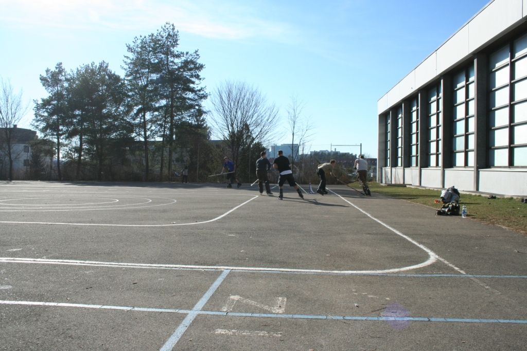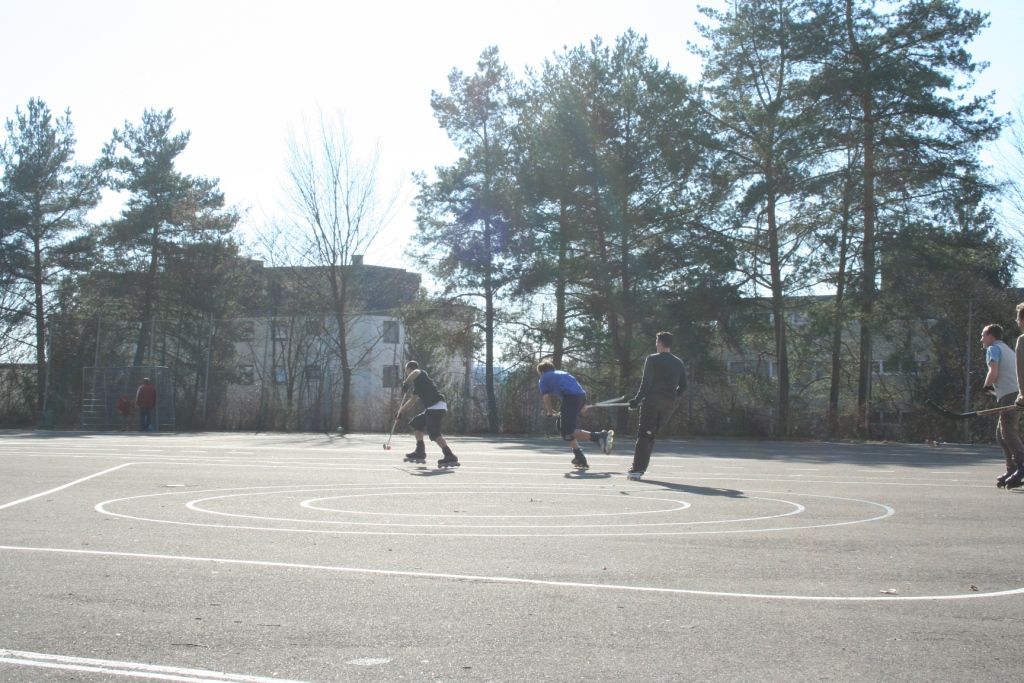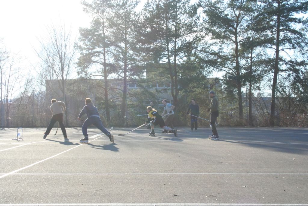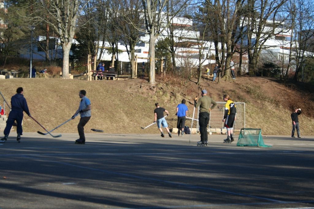 Im Winter spielen wir – sofern das Wetter es möglich macht - Eishockey auf einem See in der Umgebung.