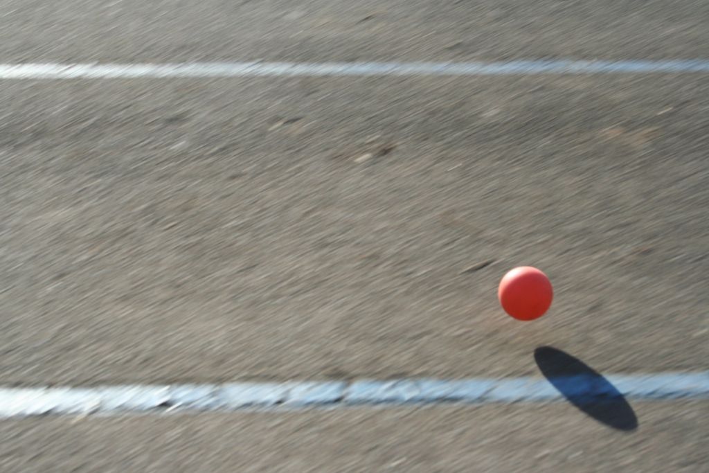Wir spielen auf dem Asphaltplatz in der Nähe der Kunsthalle in Tübingen. (google Earth: 48.5407° 9.0482°)