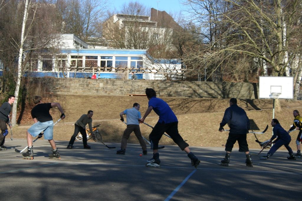 Wir sind eine gemischte Gruppe zwischen 25 und 40 Jahren, die seit 15 Jahren in Tübingen regelmäßig Hockey spielt. Die meisten haben schon von klein auf in verschiedenen Ecken Deutschlands (Schwenningen, Tübingen, Augsburg, Krefeld, Berlin,…) unterschiedliche Arten Street-Hockey, Inline-Hockey oder Eishockey gespielt.